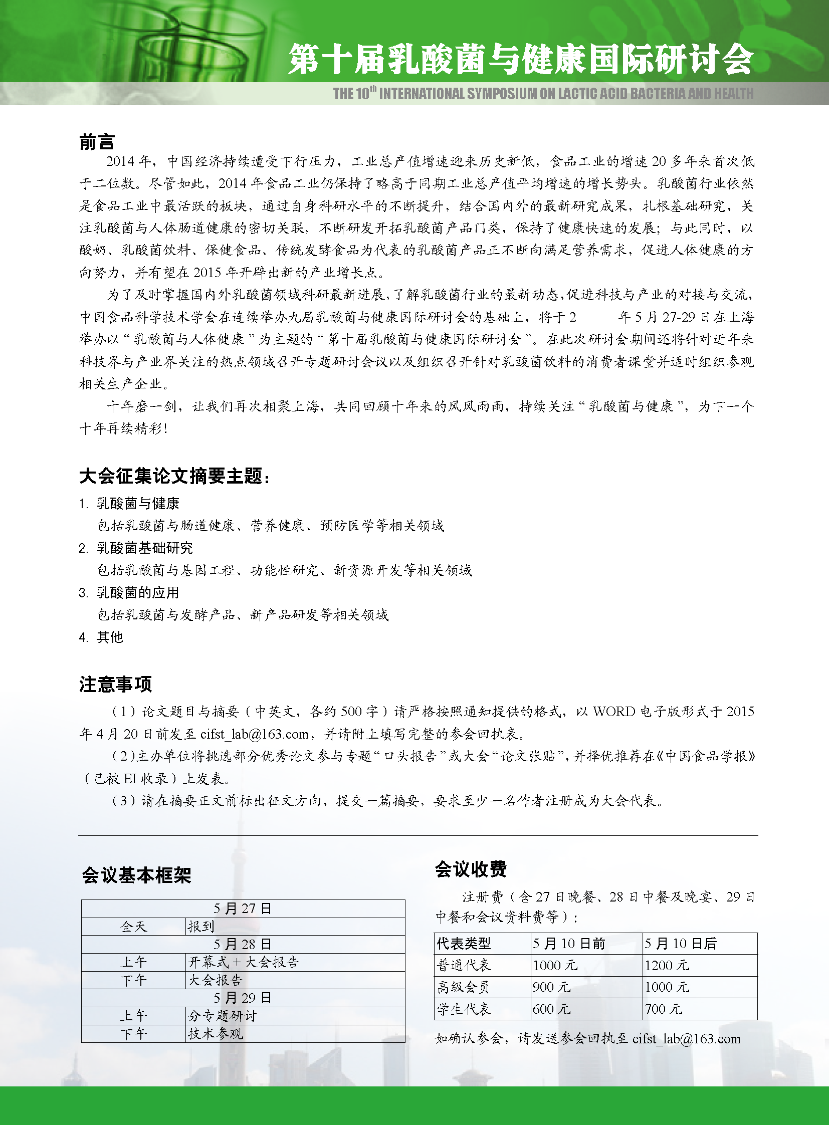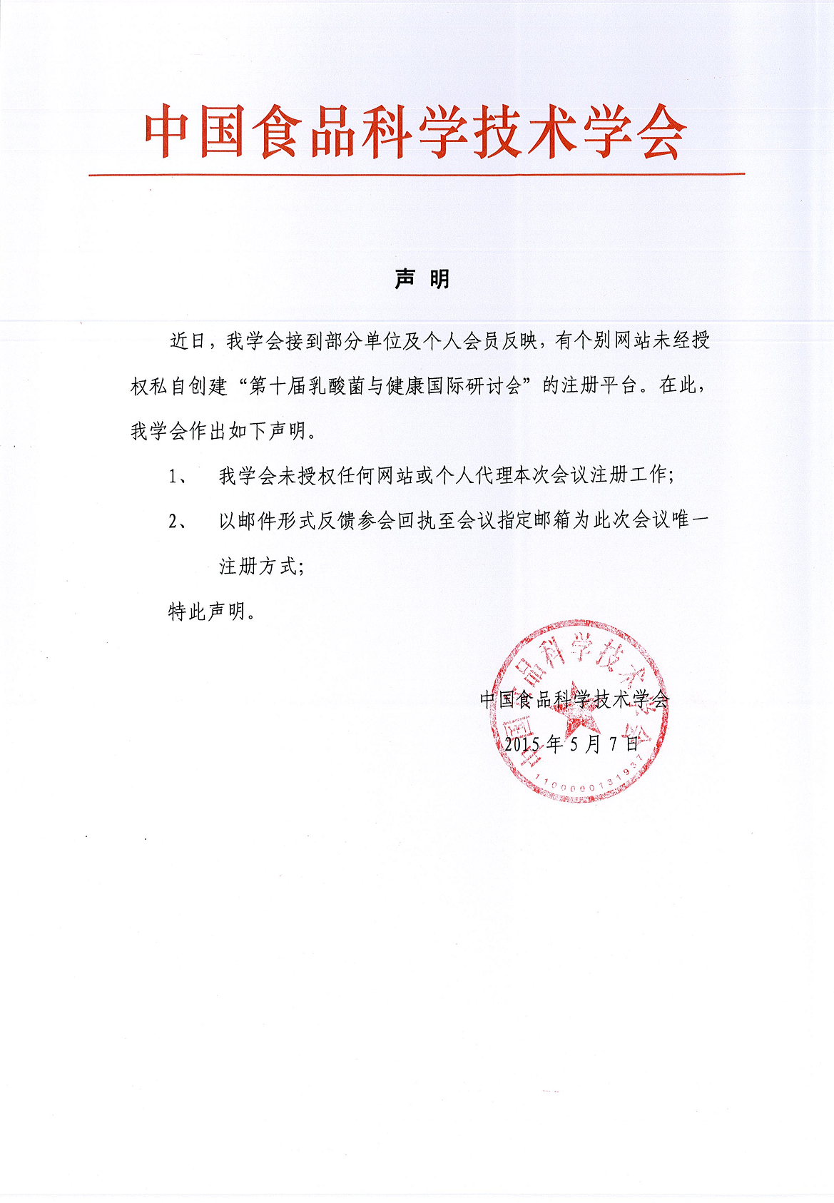 【注】關于“第十屆乳酸菌與健康國際研討會”會議注冊的聲明